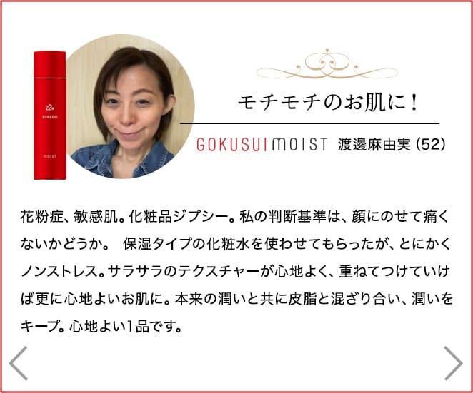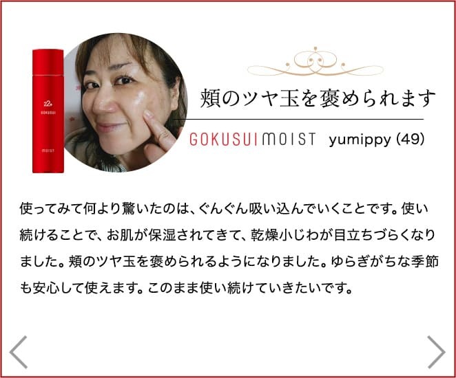 GOKUSUIローションの後に、お好みでお手持ちの乳液かクリームをご使用ください。
