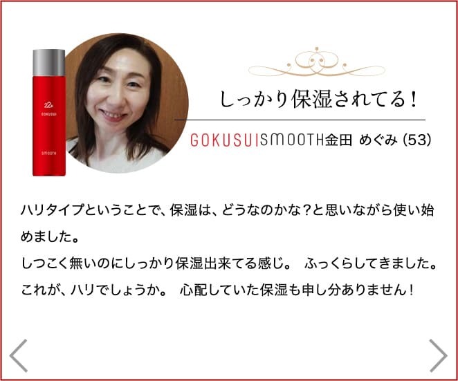 『SMOOTH』・・・特に小じわやたるみ毛穴、肌あれが気になる方におすすめで、ふっくら、なめらかな素肌に導きます。